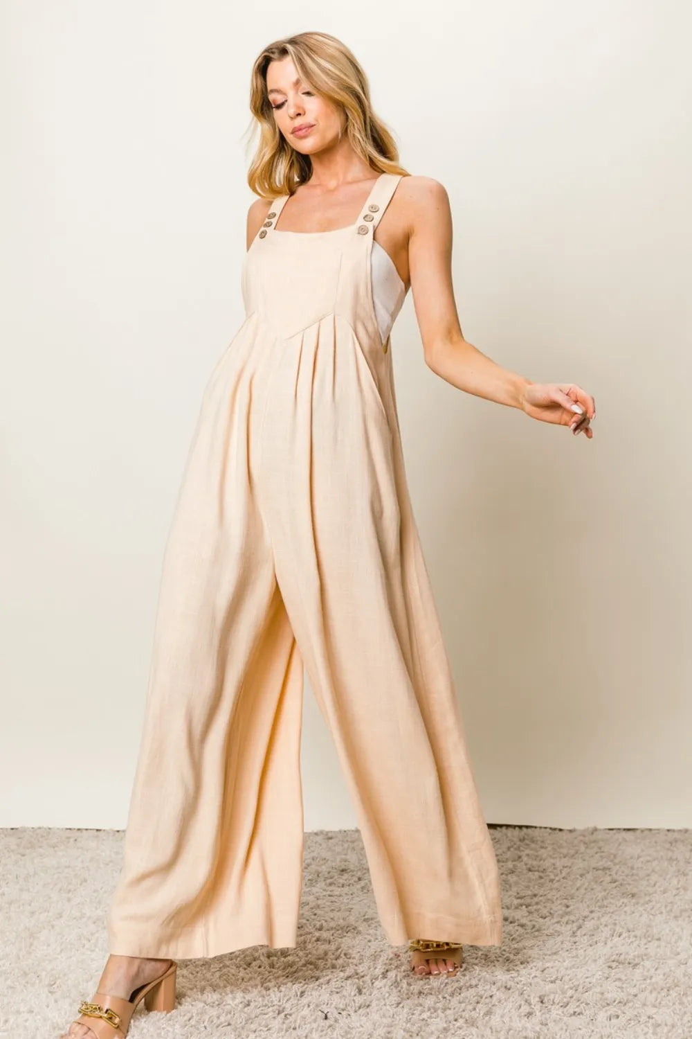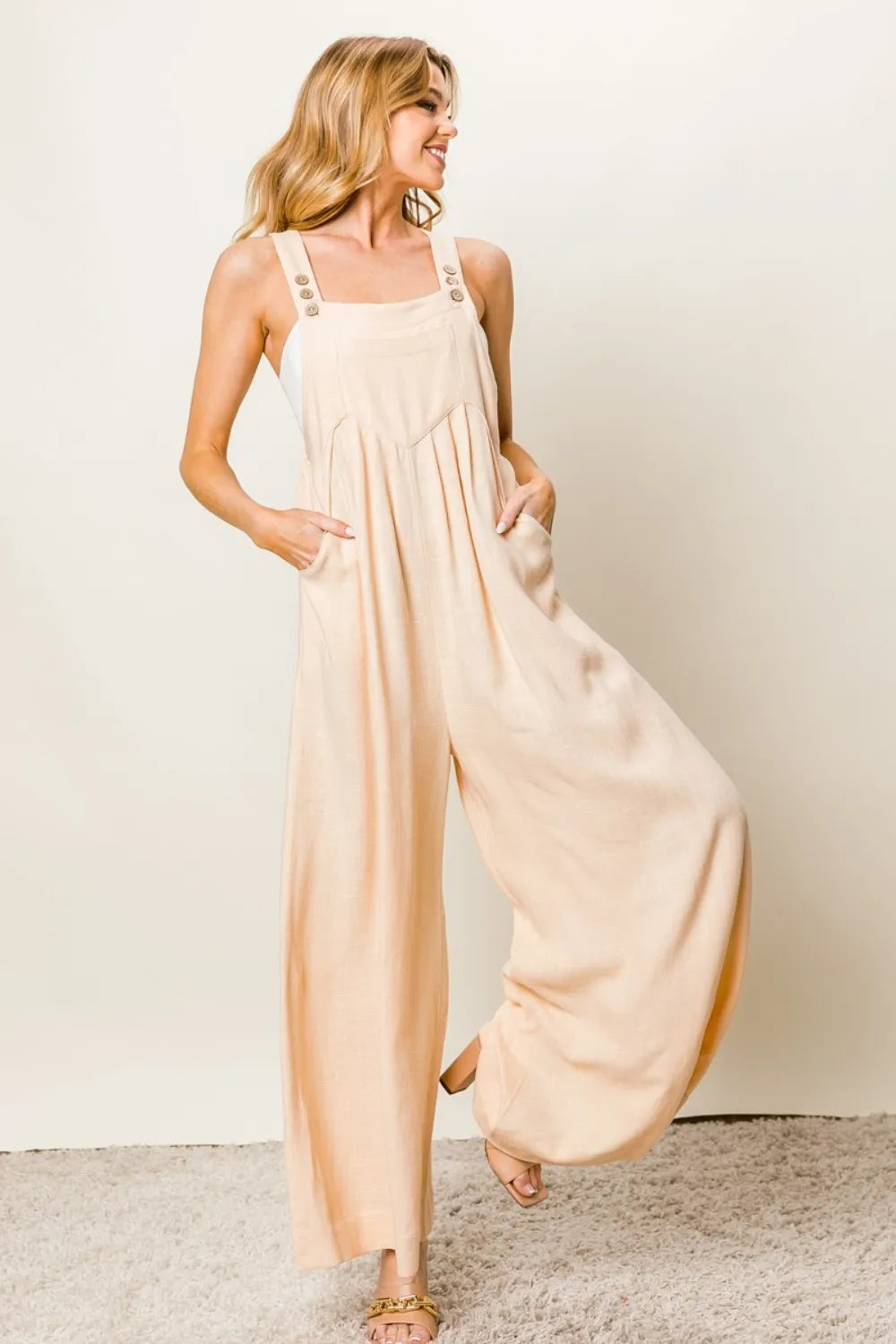 BiBi Texture Sleeveless Wide Leg Jumpsuit