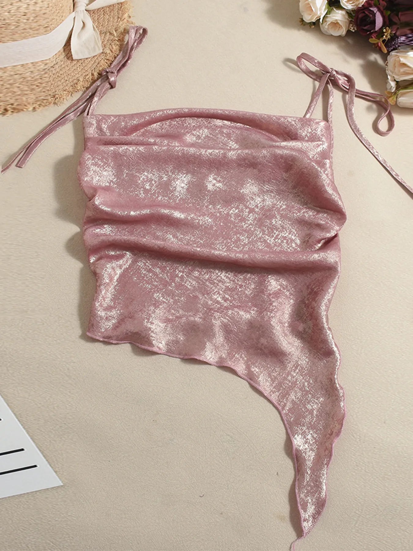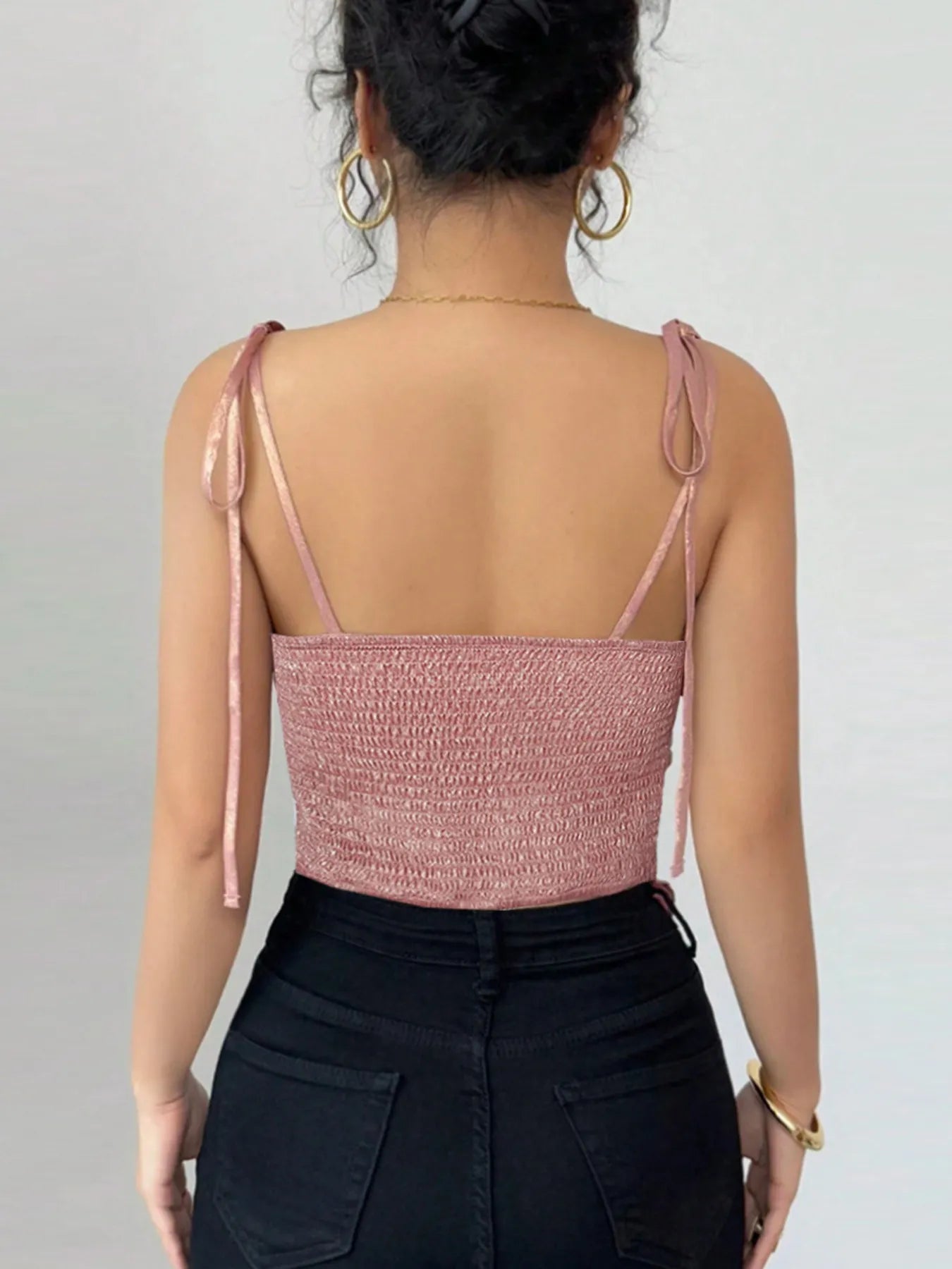 Tie Shoulder Cami Top with Ruched Detail