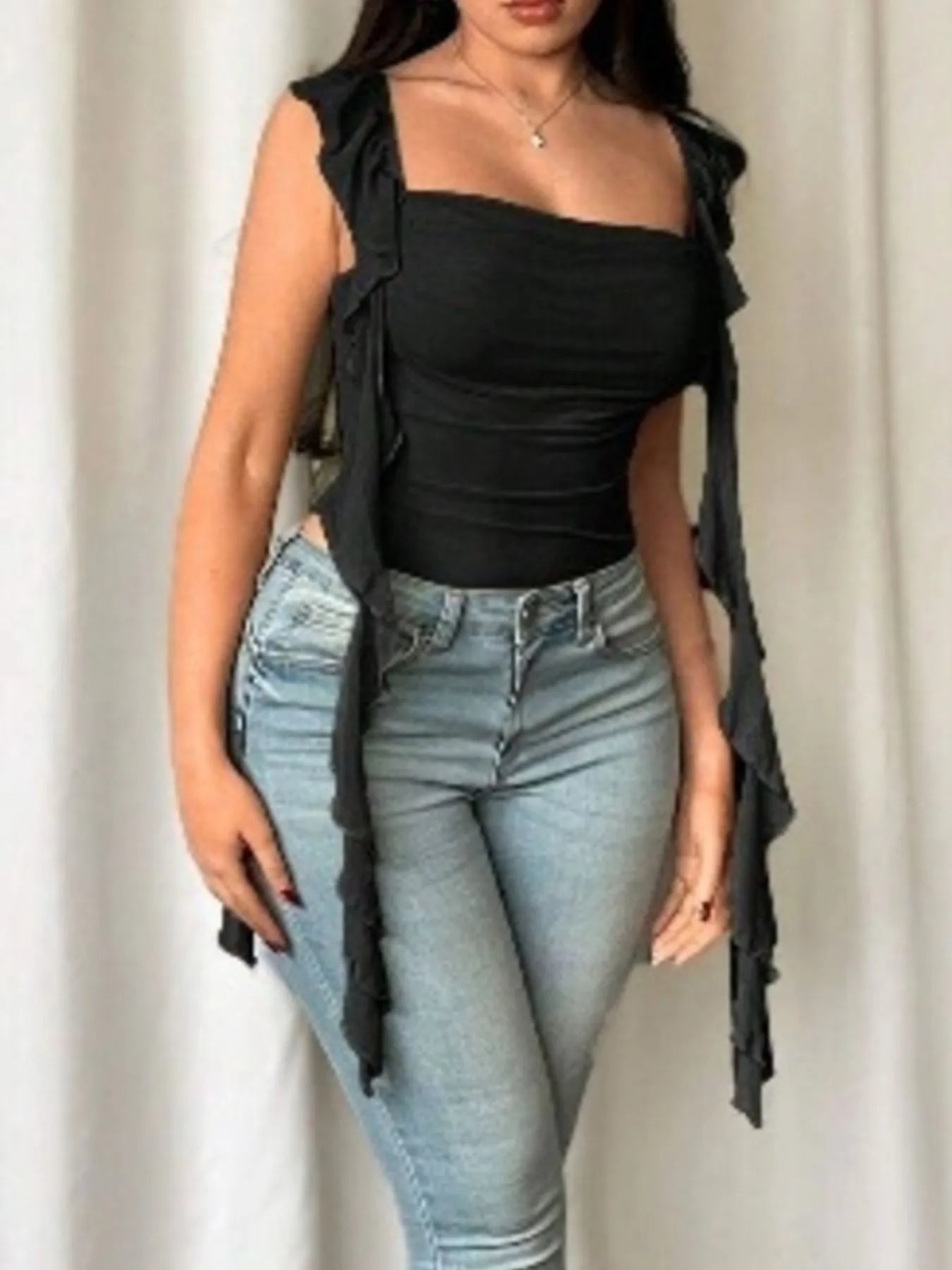 Ruffled Square Neck Bodysuit